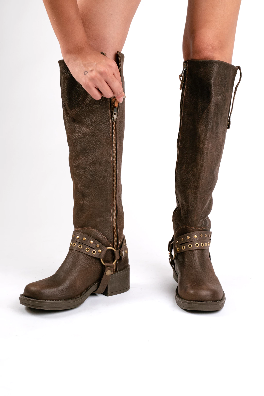 Bota tipo bucanera Def La bota tipo bucanera Def es la elección ideal para quienes buscan tendencia, comodidad y calidad. Con una altura de caña por debajo de la rodilla, está confeccionada en cuero natural graneado con un acabado jaspeado que resalta su elegancia.