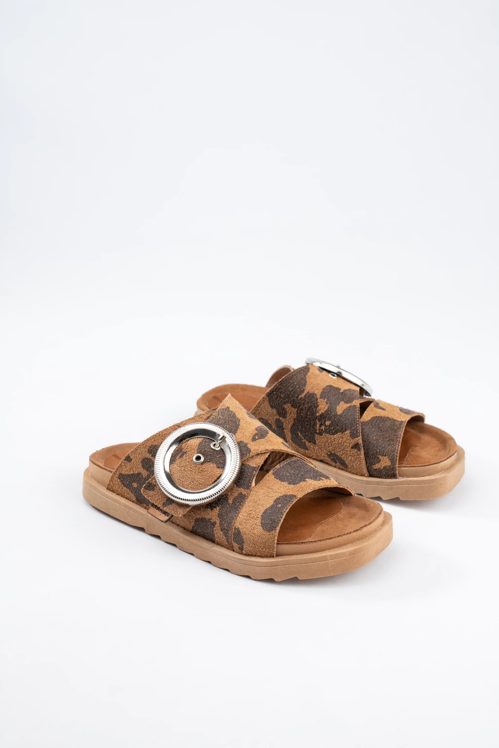 El detalle que marca la diferencia es la hebilla circular niquelada, presente tanto en la capellada como en el cierre lateral ajustable, que permite un calce perfecto y personalizado.